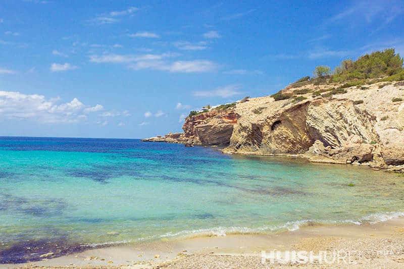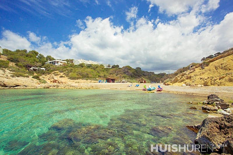 Cala Codolar staat bekend om zijn prachtige water dat glinstert onder de zon, een spektakel dat wordt aangevuld door het witte kiezelzand dat de voeten van de bezoekers streelt. Het strand ligt midden in de mooie natuur en biedt een perfect plaatje waar het blauwe water de horizon kust en de meest rustige omgeving biedt om te genieten van de schoonheid van Ibiza. Hier kun je jezelf onderdompelen in het prachtige uitzicht, of je nu luiert op het zachte zand of een ontspannen duik neemt te midden van de zachte golven.